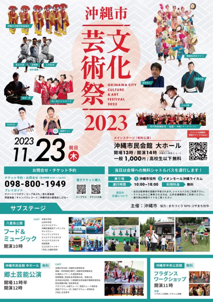直前のお知らせですが、沖縄市の文化芸術祭2023の郷土芸能公演に
